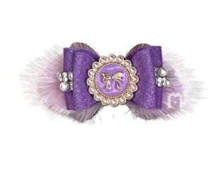 – Faixa de pérolas e strass brilhantes nas laterais do laço