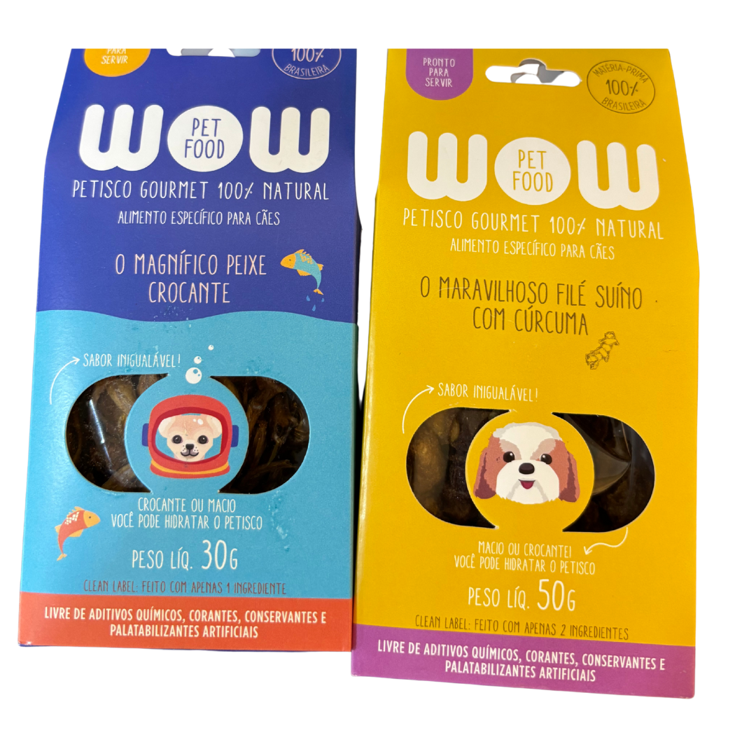 Todos os ingredientes são próprios para consumo humano, dos mesmos fornecedores de restaurantes e supermercados, ou seja, realmente utilizamos o que há de melhor! Além disso, passam por um processo desenvolvido pela WOW para que cheguem até vocês sempre fresquinhos, deliciosos e crocantes! Tudo para favorecer a alimentação saudável e dieta equilibrada do seu cão!